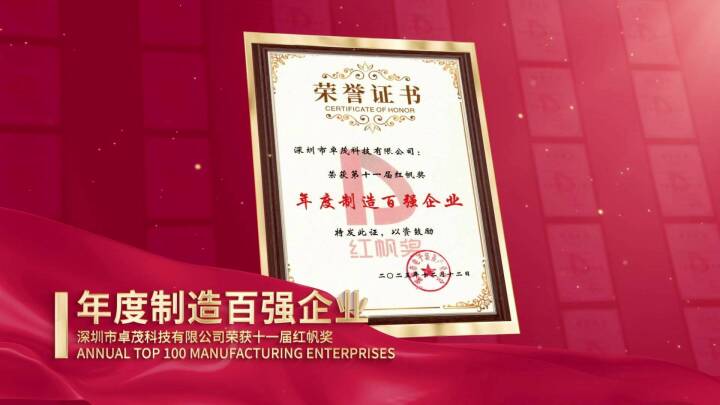 載譽前行!卓茂科技獲第十一屆紅帆獎“年度制造百強企業”